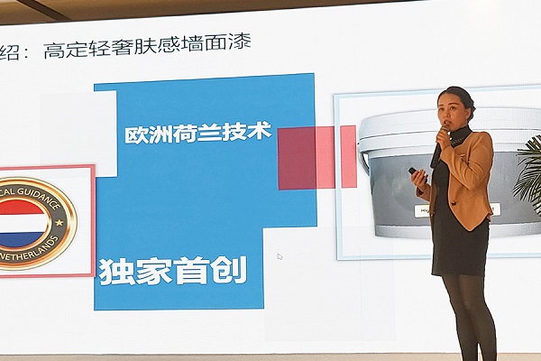 业三部装修漆全国总监张保中为大家分享“创新发展 创赢未来”。并表示今天与大家汇聚一堂:携手并进,共谋事业;创新发展,创赢未来。